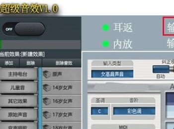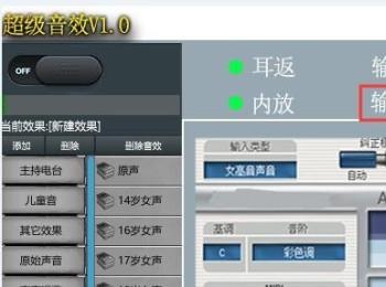 5. 最后,将调音台的开关和监听按钮打开,然后点选上音效,即可使用USB麦克风唱歌、录音了。这时,我们录音后或者唱歌的音质就从USB麦克风进去了,经过调音台处理,再次输出处理后的音频就是比较好的音效了。