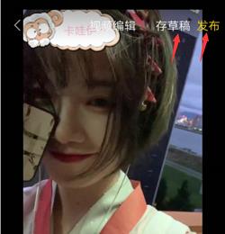 7、返回视频编辑页面后,点击“存草稿”将添加完成的视频保存至我的作品,点击“发布”可快速分享给好友。