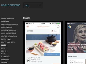 5.Mobile-patterns:只有移动端界面,可以在左边菜单分类检索,诸如登录、列表、搜索常见的元素都可以找得到。