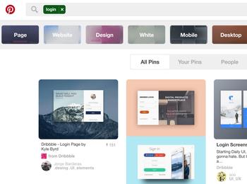 6.Pinterest:国外大名鼎鼎的收集idea的地方,国内的类似的就是花瓣,比如要做登录,直接都关键词,如下图 ↓