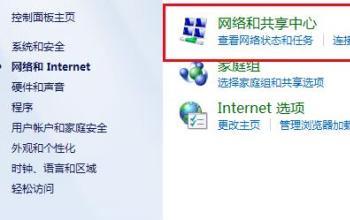 到这个界面之后找到‘网络和共享中心’点击进入