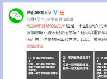 微信上线快9年了,随着相关的应用越来越广泛、用户的社交关系越来越庞大,很多人的微信好友都在不断增加。这其中难免有一些不再有“交集”的所谓好友,也有一些由于各种原因不愿意再搭理的好友,于是不少人就养成了定期清理删除或者拉黑微信好友的习惯。但有些朋友却并不是十分清楚微信的删除和拉黑究竟有什么不同,使用的时候就比较随意。近日,腾讯微信团队通过官方微博详细解释了删除和拉黑好友的区别,同时还透露了一些小技巧,比如好友删除还能悄悄加回来,拉黑了如何看朋友圈。