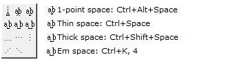 很多情况下添加一个或者2个细空格的情况下它已经足够使用,所以与之对应的Ctrl快捷键也很好记忆,(但是你也可以通过自定义快捷键的对话框将它们进行修改,如果你发现你经常需要使用一些额外的空格,也有很好的方法对间距进行调整。