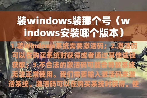 1. 装Windows系统需要激活码;