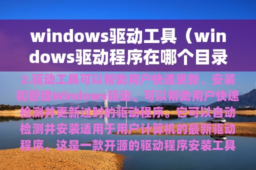 1. Windows驱动工具可以帮助用户快速更新、安装和管理Windows驱动。