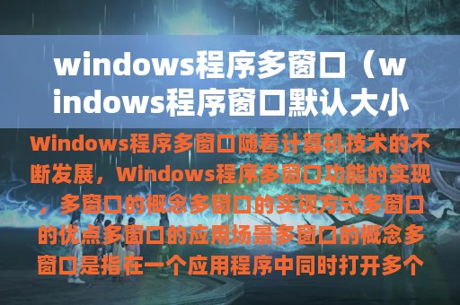 随着计算机技术的不断发展,现代操作系统越来越注重用户体验,多窗口功能成为了必备的功能之一。Windows程序多窗口功能的实现,为用户提供了更加方便快捷的操作体验。本文将从以下几个方面介绍Windows程序多窗口的相关知识。