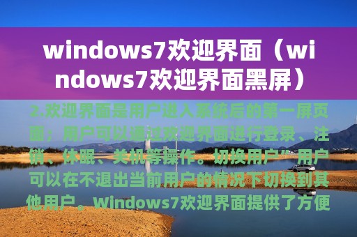 4. Windows7作为微软公司推出的操作系统之一,其欢迎界面是用户进入系统后的第一屏页面,也是用户了解系统的第一步。