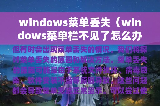 2. 在本文中,我们将探讨菜单丢失的原因和解决方法。