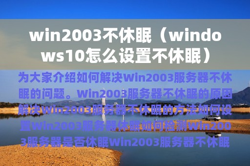 解决Win2003服务器不休眠的方法也有很多,可以通过修改电源管理设置、更新硬件驱动程序等方式来解决。具体方法如下: