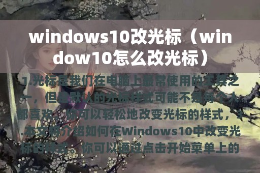1. 光标是我们在电脑上最常使用的工具之一,但是默认的光标样式可能不是每个人都喜欢。
