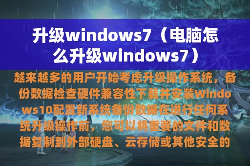 随着Windows 7的逐渐老化,越来越多的用户开始考虑升级操作系统,以获得更好的性能和更强的安全性。本文将为您介绍升级Windows 7的详细步骤和注意事项,帮助您顺利完成升级过程。