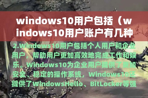 1. Windows10用户包括个人用户和企业用户,涵盖了各行各业。