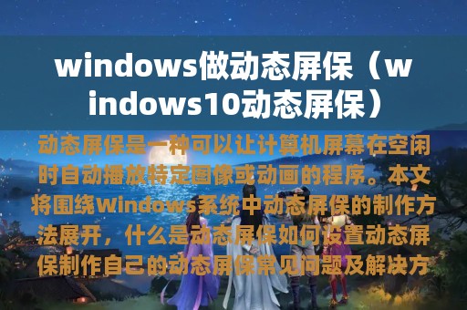 动态屏保是一种可以让计算机屏幕在空闲时自动播放特定图像或动画的程序。在Windows系统中,动态屏保是一项非常实用的功能。本文将围绕Windows系统中动态屏保的制作方法展开,为大家介绍如何制作一个属于自己的动态屏保。