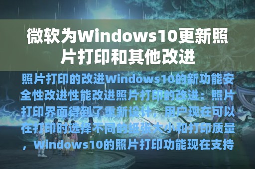 Windows 10的更新为用户带来了诸多改进,包括照片打印和其他方面的提升。新的打印界面和增强的打印功能使得用户可以更加方便地打印出高质量的照片。Windows 10的新功能、安全性改进和性能改进也为用户的使用体验带来了更多的便利和保障。