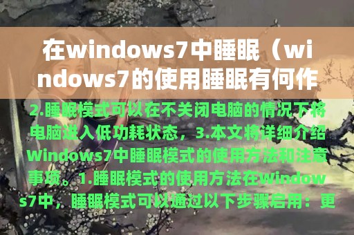 3. 本文将详细介绍Windows 7中睡眠模式的使用方法和注意事项。