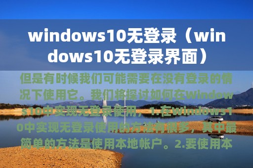 2. 在本文中,我们将探讨如何在Windows 10中实现无登录使用,以及这样做的好处和注意事项。