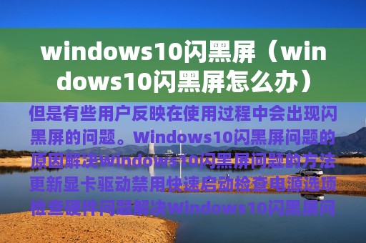 Windows 10是目前最受欢迎的操作系统之一,但是有些用户反映在使用过程中会出现闪黑屏的问题。这种问题可能会让用户感到困惑和烦恼。本文将为大家介绍Windows 10闪黑屏问题的原因和解决方法,帮助大家轻松解决这一问题。
