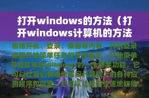 Windows是一款广泛使用的操作系统,它的用户界面简单易用,功能强大。本文将介绍打开Windows的方法,包括开机、登录、桌面等内容。以下是本文的大纲目录: