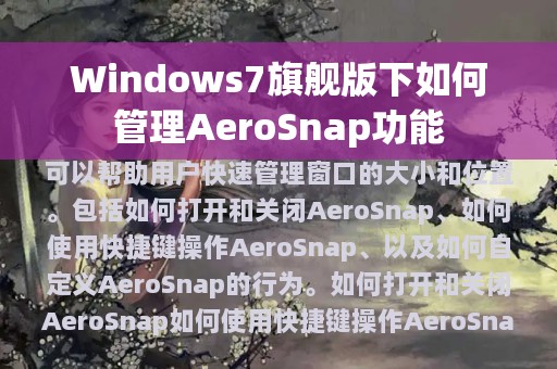 AeroSnap是Windows7旗舰版中的一项非常实用的功能,可以帮助用户快速管理窗口的大小和位置。本文将为大家介绍如何在Windows7旗舰版下管理AeroSnap功能,包括如何打开和关闭AeroSnap、如何使用快捷键操作AeroSnap、以及如何自定义AeroSnap的行为。