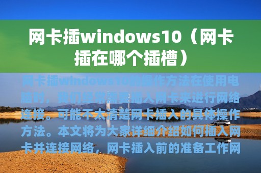 在插入网卡之前,我们需要先了解自己的电脑接口类型,以便选择合适的网卡。同时,还需要确认自己的电脑是否支持插入网卡,以免造成不必要的损失。