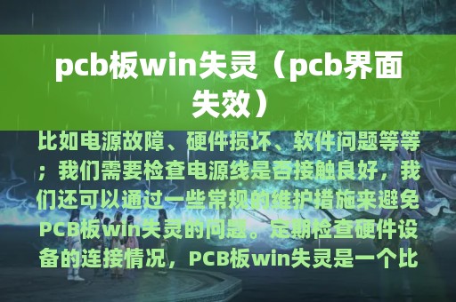 2. 本文将围绕着PCB板win失灵的问题进行探讨,分析其原因和解决方法;