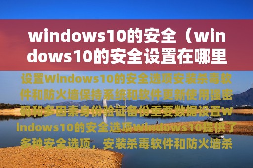 保护Windows 10的安全是每个用户都需要关注的问题。通过设置Windows 10的安全选项、安装杀毒软件和防火墙、保持系统和软件更新、使用强密码和多因素身份验证、备份重要数据等措施,你可以有效保护你的电脑免受黑客攻击、病毒侵袭等安全问题的影响。