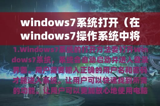 3. 本文将介绍Windows 7系统的打开方法和优点。