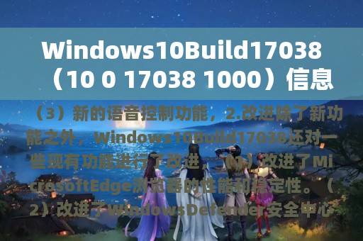 Windows10Build17038是一款功能强大、性能稳定的操作系统,它带来了许多新的功能和改进,可以让用户更加方便地使用电脑。如果你正在考虑升级操作系统,Windows10Build17038绝对是一个不错的选择。