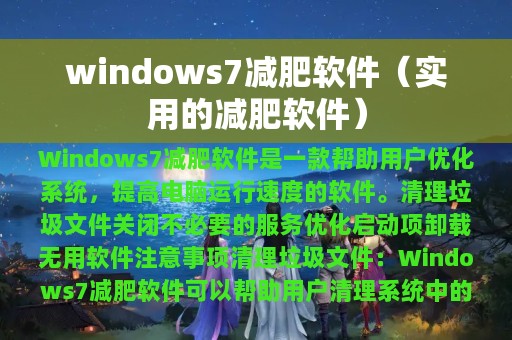 Windows 7减肥软件是一款帮助用户优化系统,减少系统负担,提高电脑运行速度的软件。本文将为大家介绍Windows 7减肥软件的使用方法和注意事项。