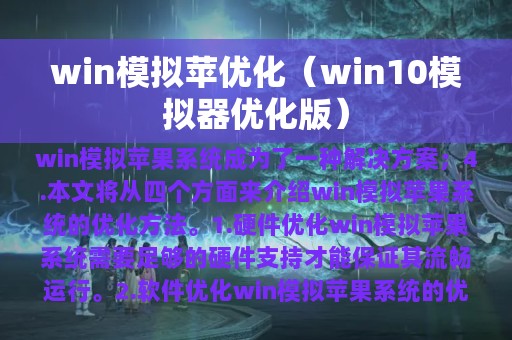 4.本文将从四个方面来介绍win模拟苹果系统的优化方法。