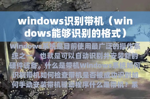 本文围绕Windows识别带机展开,介绍了带机的概念、Windows系统如何识别带机、如何检查带机是否被成功识别以及如何手动安装带机驱动程序等知识点和操作方法。希望本文能够帮助读者更好地理解和使用Windows系统。
