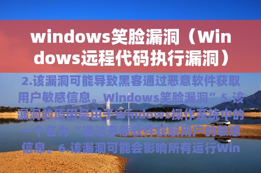 9. 随着互联网的普及,网络安全越来越受到人们的关注。在这个背景下,Windows笑脸漏洞的出现再次提醒我们,网络安全问题不容忽视。