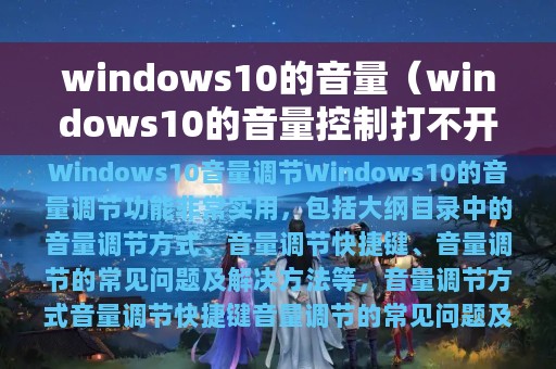 Windows 10 的音量调节功能非常实用,可以让我们轻松调整音量大小,以适应不同的环境和需求。本文将为大家介绍 Windows 10 音量调节的详细内容,包括大纲目录中的音量调节方式、音量调节快捷键、音量调节的常见问题及解决方法等,希望能够帮助大家更好地使用 Windows 10。