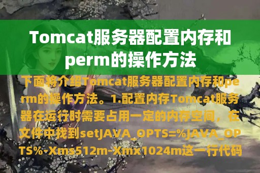 Tomcat服务器是一个开源的Java Servlet容器,用于实现Java Servlet和JavaServer Pages(JSP)规范。在使用Tomcat服务器时,我们需要对其进行一些配置,如内存和perm的配置。下面将介绍Tomcat服务器配置内存和perm的操作方法。