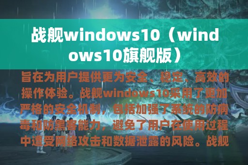 1. 突出战舰windows10的安全性、稳定性和操作体验优势