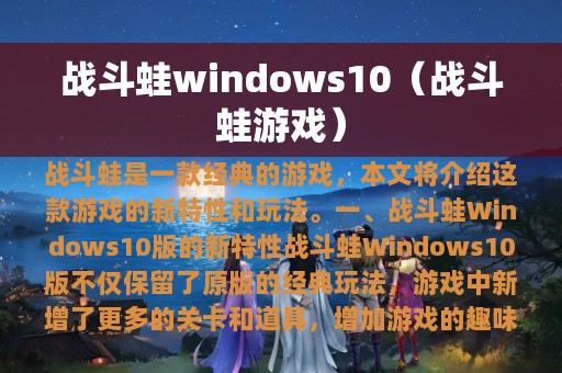战斗蛙是一款经典的游戏,而它现在也在Windows10上推出了新版本。本文将介绍这款游戏的新特性和玩法。