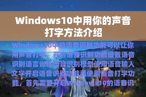 Windows 10中的语音识别功能可以让你用声音打字,省去了键盘输入的麻烦。本文将为你介绍Windows 10中用声音打字的方法及注意事项。