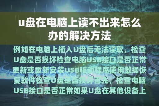 当U盘在电脑上无法读取时,我们可以先检查U盘是否损坏,再检查电脑USB接口是否正常,尝试更新或重新安装USB驱动程序,最后可以使用数据恢复软件来恢复数据。但需要注意的是,使用数据恢复软件需要一定的专业知识,操作不当可能会导致数据丢失。