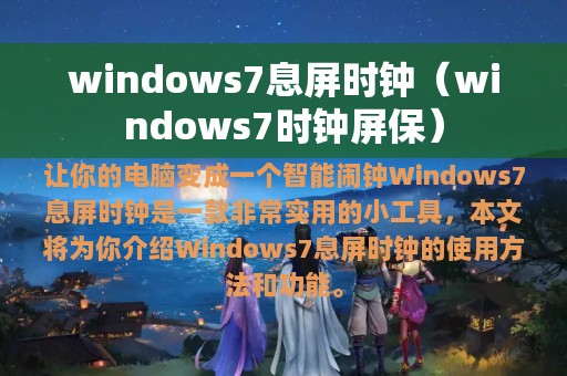 Windows 7息屏时钟是一款非常实用的小工具,它可以让你的电脑变成一个智能闹钟,让你在工作、学习、休息时不错过任何重要的时间。通过本文的介绍,相信大家已经掌握了Windows 7息屏时钟的使用方法和功能,赶快去试试吧!