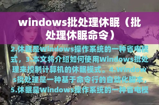 3. 本文将介绍如何使用Windows批处理来控制计算机的休眠模式。