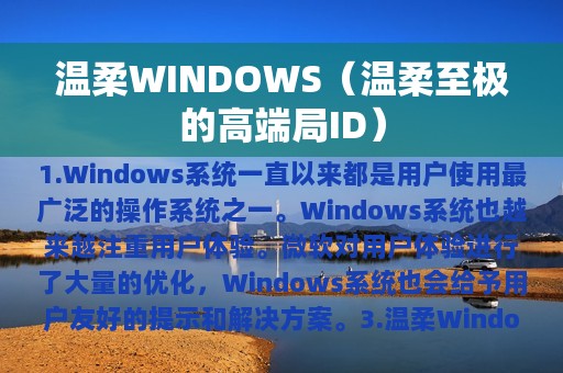 1. Windows系统一直以来都是用户使用最广泛的操作系统之一。2. 在不断更新迭代的过程中,Windows系统也越来越注重用户体验。3. 温柔Windows成为了Windows系统的一个特点。