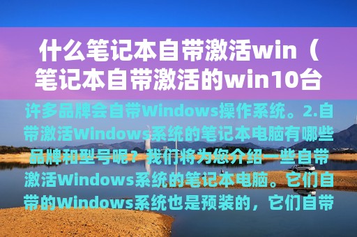 3. 接下来,我们将为您介绍一些自带激活Windows系统的笔记本电脑。