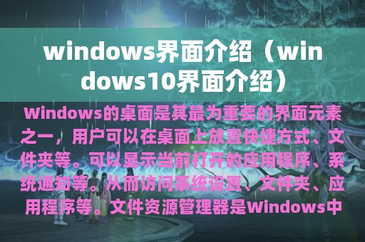 2. 本文将介绍Windows界面的主要组成部分和功能,帮助读者更好地使用Windows系统。