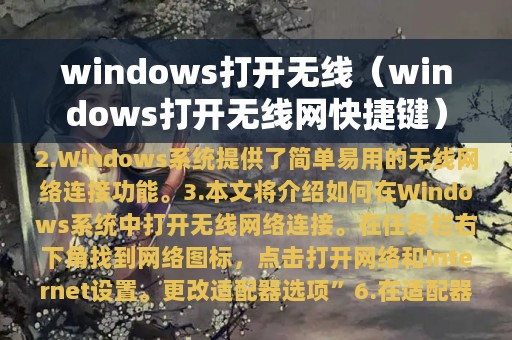 3. 本文将介绍如何在Windows系统中打开无线网络连接。