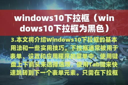 3. 本文将介绍Windows 10下拉框的基本用法和一些实用技巧。