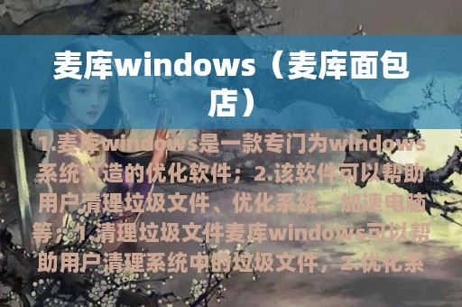 3. 本文将详细介绍麦库windows的功能和使用方法。