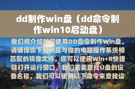 DD命令是一个非常强大的工具,它可以用来制作Win盘。Win盘是一个可以用来启动电脑并修复操作系统的工具。在本文中,我们将介绍如何使用DD命令制作Win盘。