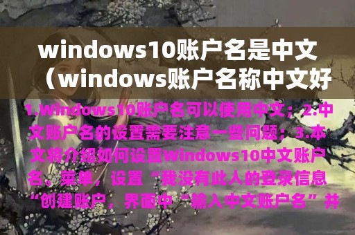 3. 本文将介绍如何设置Windows10中文账户名。