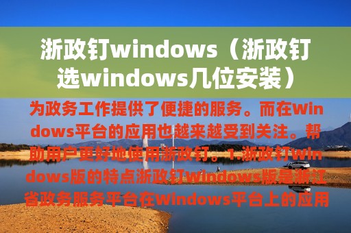 3. 本文将介绍浙政钉Windows版的特点和应用场景,帮助用户更好地使用浙政钉。