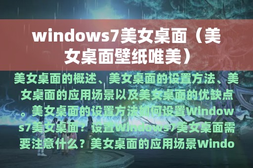 Windows 7美女桌面是指在Windows 7操作系统中,用户可以将自己喜欢的美女图片设置为桌面背景。Windows 7美女桌面的特点在于其图片质量高、色彩鲜艳、清晰度高,可以让用户在工作或学习之余,享受到一份美的享受。
